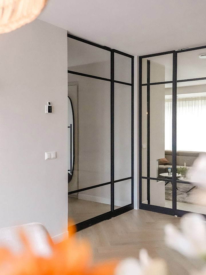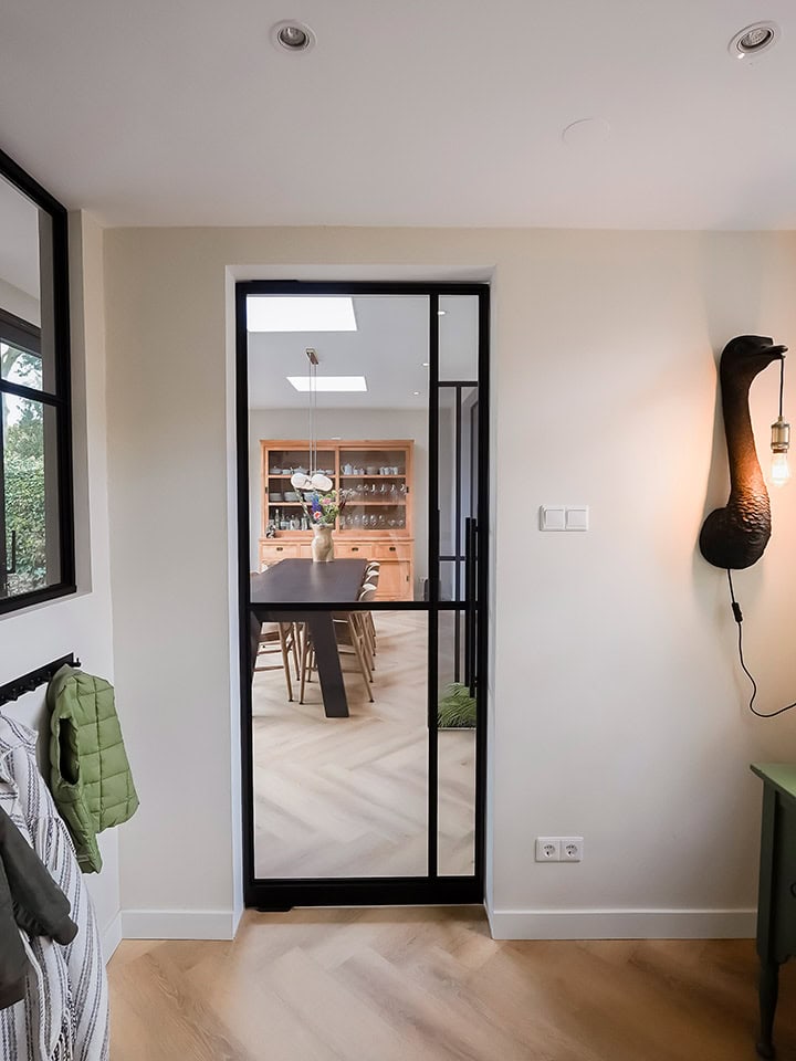 Voor kleinere doorgangen is een enkele stalen taatsdeur vaak voldoende. Bij bredere openingen of als je een statement wilt maken, is een dubbele taatsdeur met of zonder zijpanelen een betere keuze. Beide varianten zijn even functioneel en worden uiteraard exact passend gemaakt.