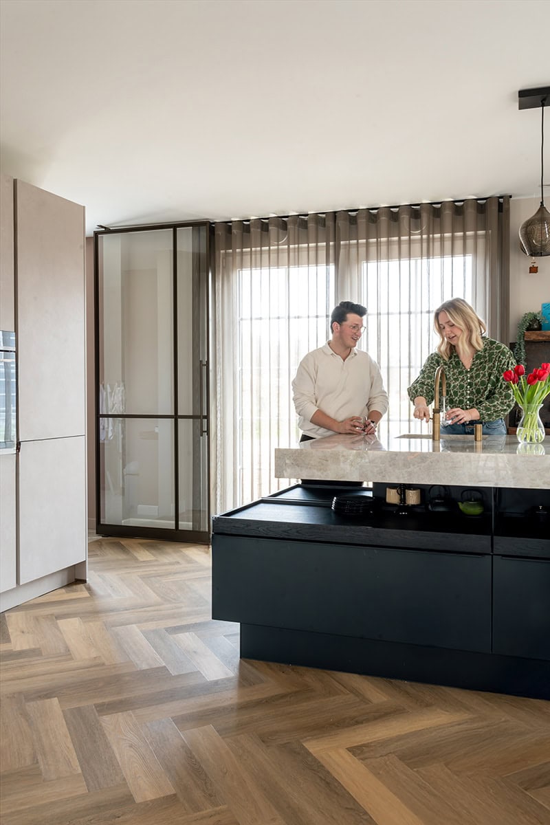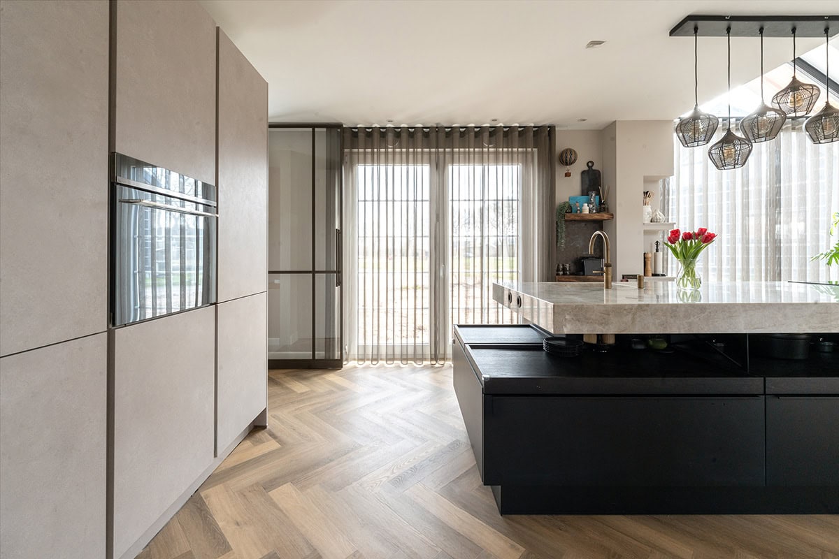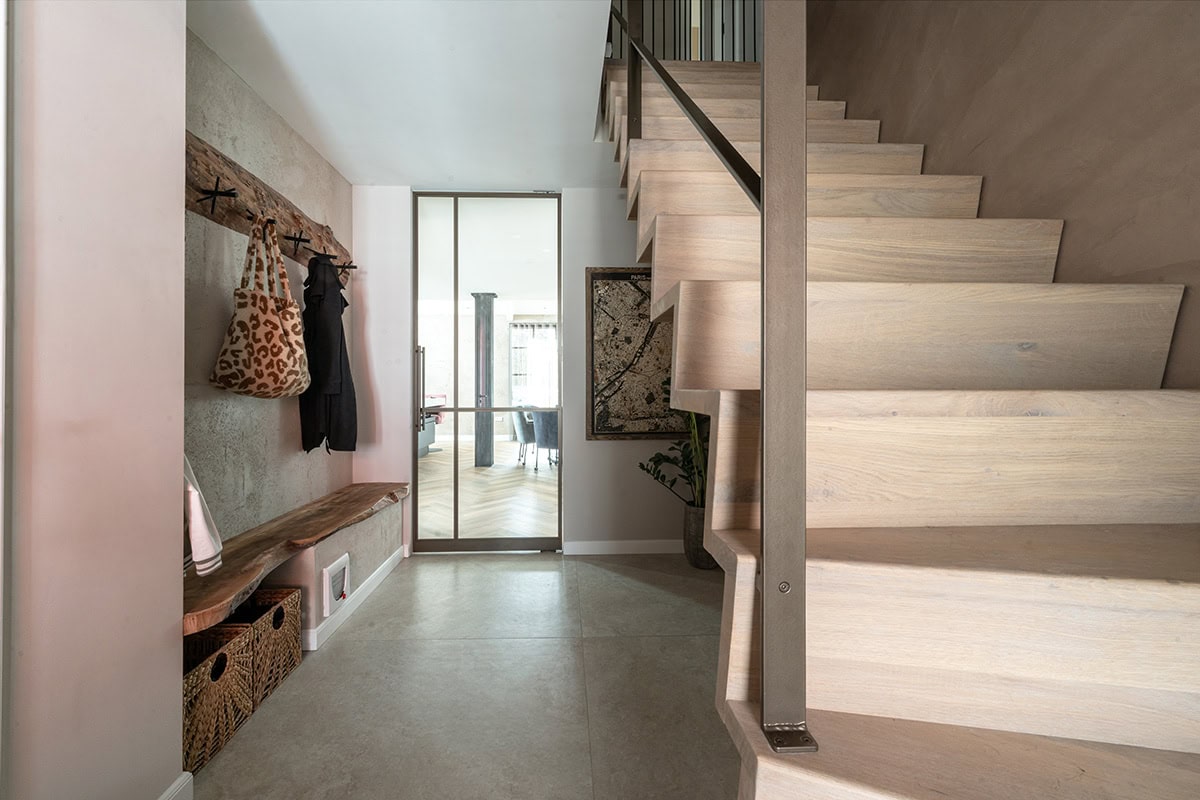 Het mooie aan de taatsdeur is dat je geen kozijn hebt. Hierdoor vallen de strakke wanden goed op als je de deur open hebt staan. De deur verdwijnt als het ware in de ruimte, waardoor het interieur zijn cleane uitstraling behoudt.