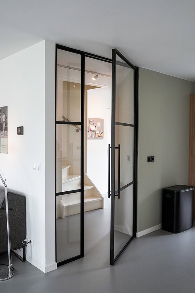 Elegant stalen deur met moderne uitstraling, op maat gemaakt voor een stijlvolle interieurafwerking.